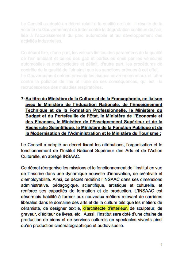 * Préparation de la prochaine A.G. des architectes d'intérieur de Côte d'Ivoire, en vue de la rentrée solennelle du bureau du CNAICI